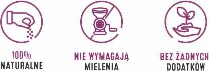 Produkty nie wymagają żadnej dodatkowej obróbki, takiej jak płukanie, namaczanie czy wielokrotnie mielenie lub tarcie. Domowe Wypieki można używać bezpośrednio po otworzeniu, a to pozwala zaoszczędzić czas w kuchni.