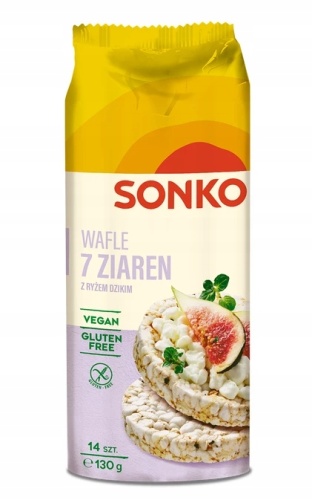 - Wafle ryżowe SONKO 7 ziaren produkowane są z aż 7 różnych dodatków. Źródło błonnika i doskonały zamiennik klasycznego pieczywa. Idealne do tworzenia pysznych, fantazyjnych kanapek, ale też do samodzielnego chrupania w każdym momencie. W składzie wafli znajdziemy bogatą kompozycję ziaren. To słonecznik, kukurydza, kasza gryczana nieprażona, amarantus, siemię lniane, kasza jaglana i brązowy ryż.